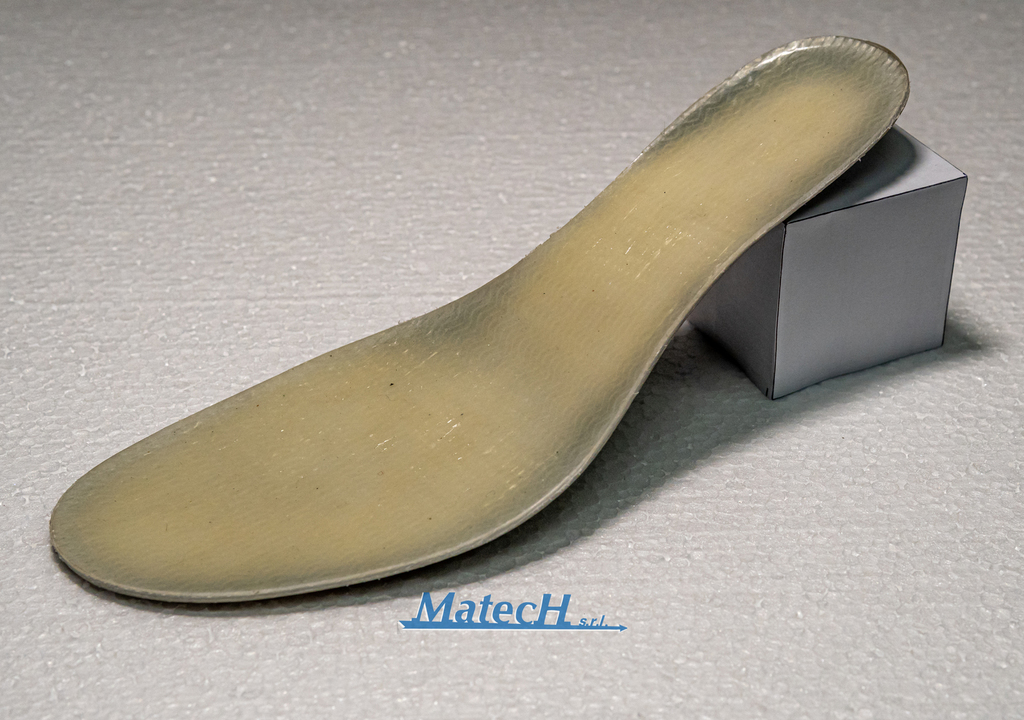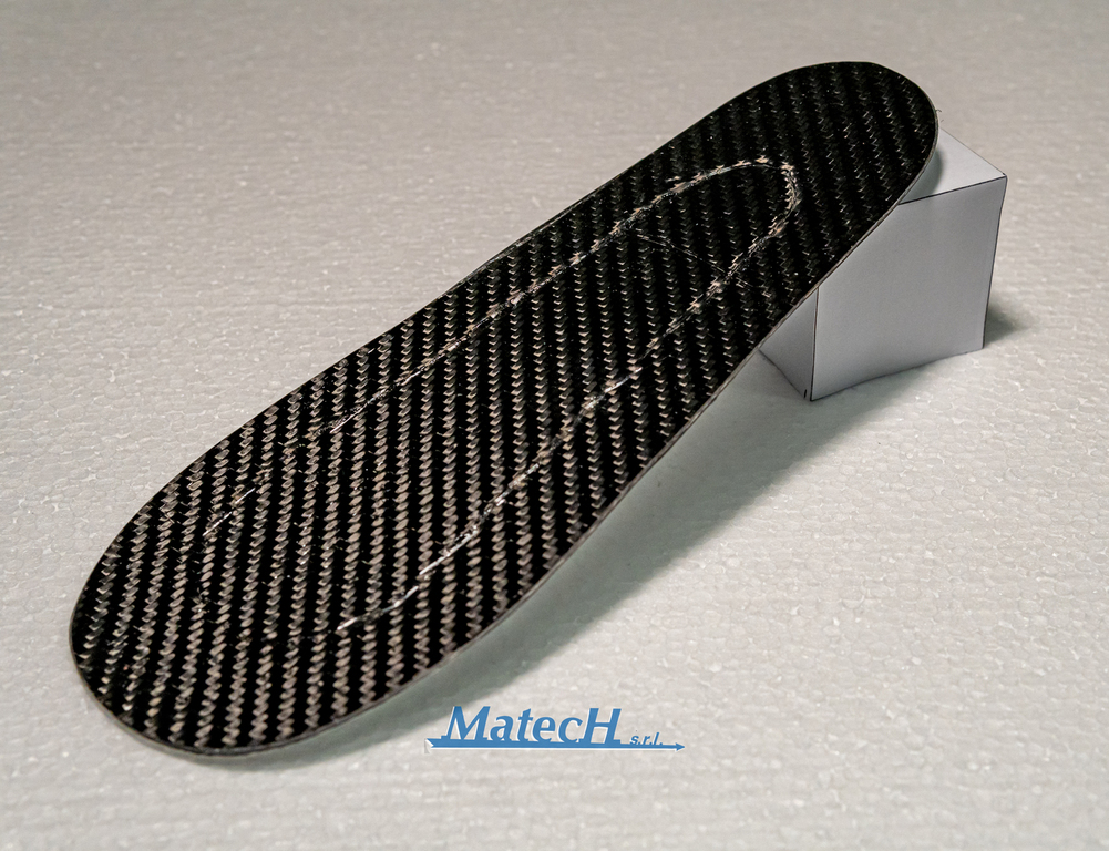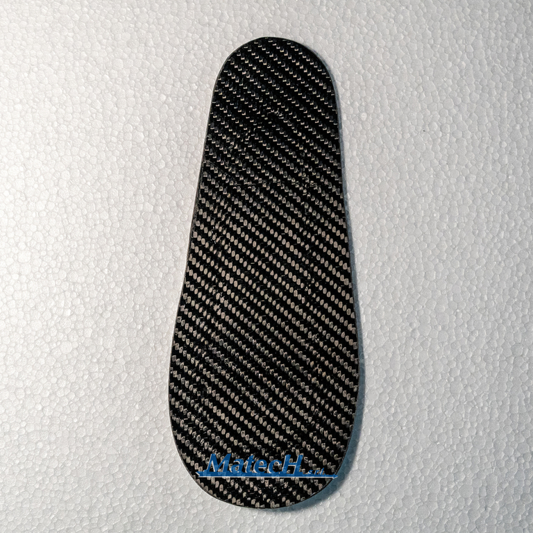 Questo plantare in fibra di carbonio viene utilizzato in ortopedia per rinforzare la parte posteriore della calzatura, senza appesantirla e generare un ingombro eccessivo.